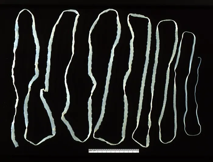 En vanligt förekommande parasit är binnikemask som kan leva i våra tarmar och bli flera meter lång!